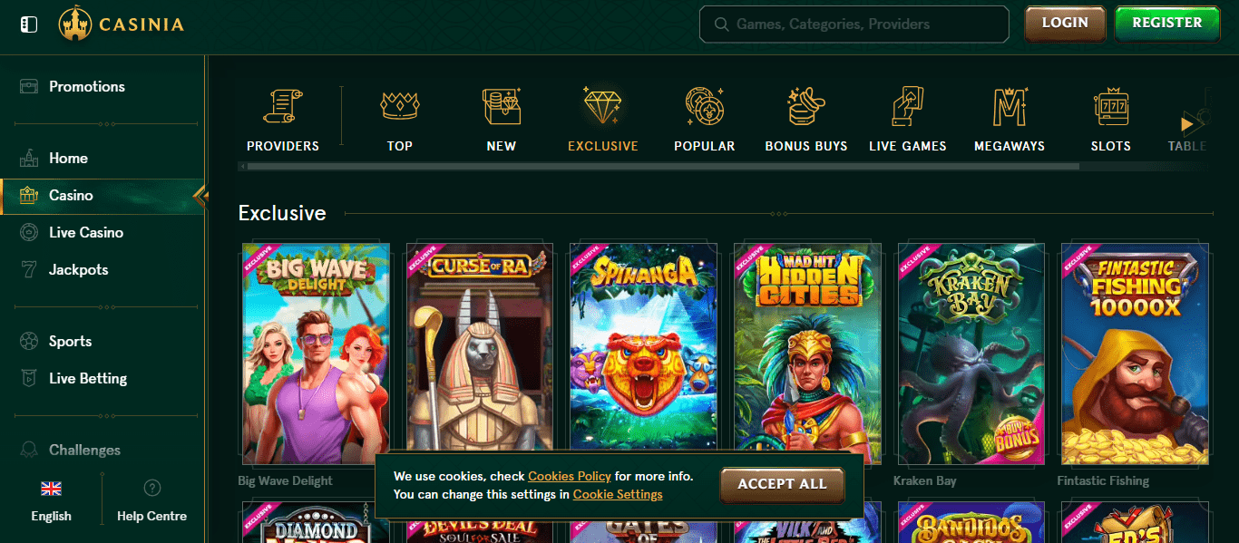 Casinia Casino ist ein offizielles Online-Casino, das der Araxio Development-Unternehmensgruppe gehört. Das Casino bietet Spielern die Möglichkeit, in eine Welt voller Spannung einzutauchen und die besten lizenzierten Spiele führender Softwareunternehmen wie NetEnt, Quickspin, Quickfire, Pragmatic Play, Rival Gaming, Amatic Industries, Habanero, Yggdrasil Gaming, iSoftBet, ELK Studios und Igrosoft zu spielen. Durch das Angebot einer großen Auswahl an Spielen für jeden Geschmack ist es die Priorität des Casinos, seinen Kunden ein komfortables und sicheres Spielerlebnis zu bieten. Casinia Casino ist lizenziert und wird nach den Gesetzen von Curacao reguliert.