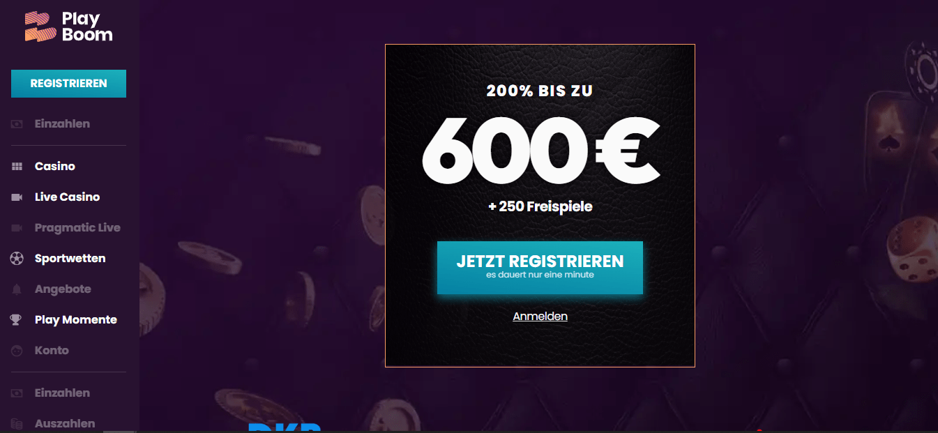 Play Boom Casino ist ein Online-Casino mit einem Katalog der besten Casinospiele und -anbieter. Die Website ist vollständig lizenziert und reguliert und verwendet SSL-Verschlüsselungsmethoden, um Ihre Online-Daten zu schützen.