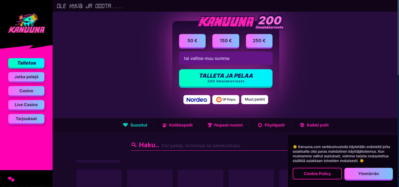 Joo. Kanuuna on yksi Viron parhaista nettikasinoista. Pelaa kolikkopelejä ja pelejä yli 75 johtavalta ohjelmistotoimittajalta ja avaa äärettömät ilmaispyöräytyspalkinnot ilman kierrätysvaatimuksia.