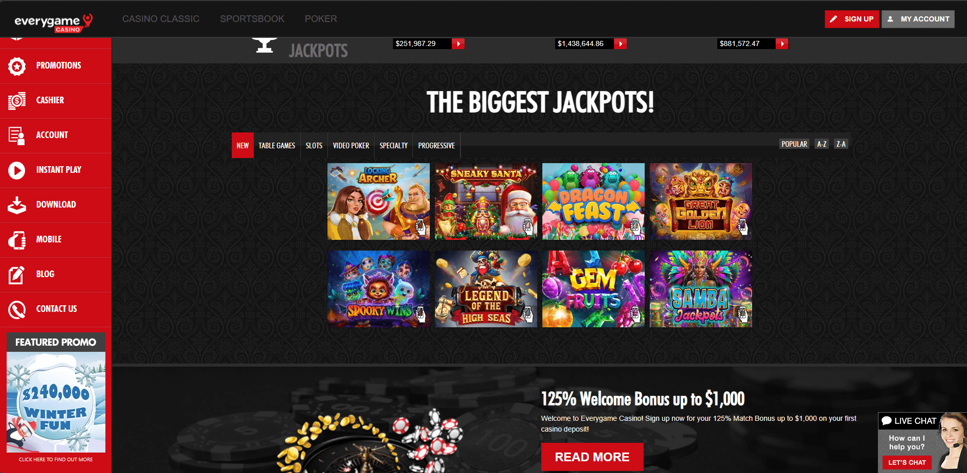 By selecting the chat icon located at the bottom right of the page, you can have a real-time conversation with an agent if you're having issues at Everygame Casino Red. Email is always an option, of course, but be aware that it might take some time to hear back.